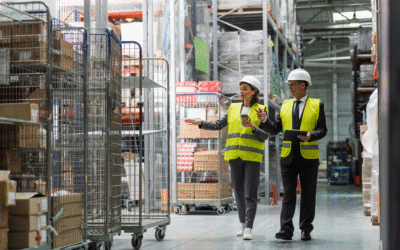 Quality control inspectors reviewing warehouse operations